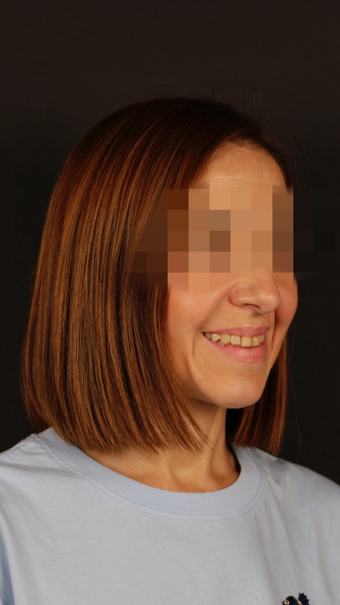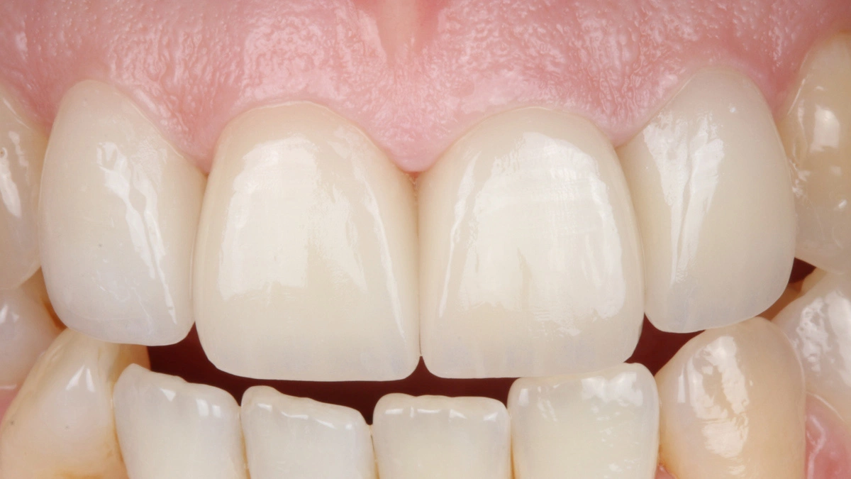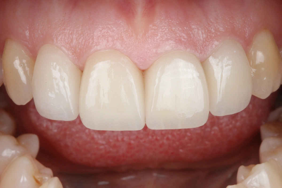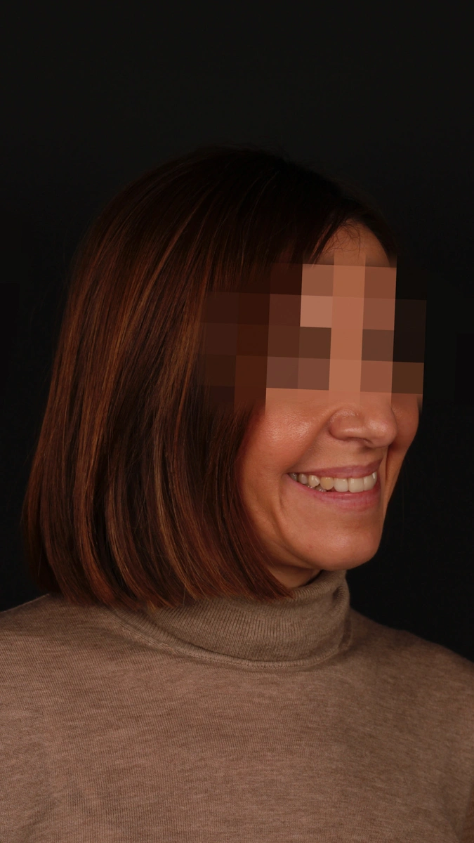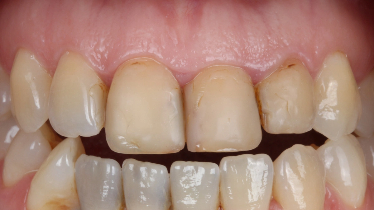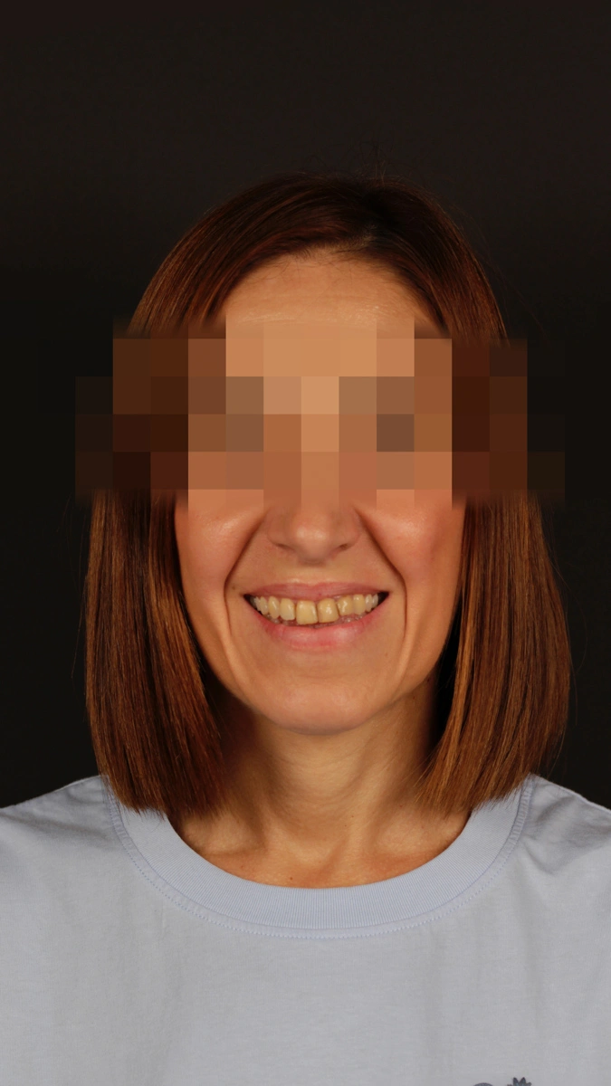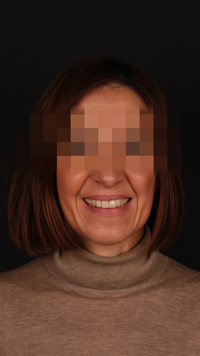 Presenta carillas de composite obsoletas, filtradas por caries, opacas, con falta de brillo y luminosidad. Proponemos sustituirlas por carillas feldespáticas de alta estética.