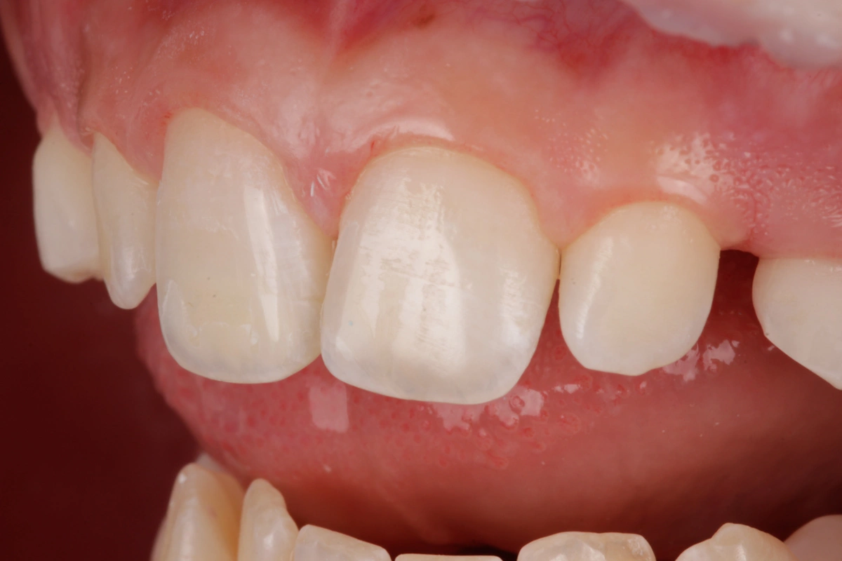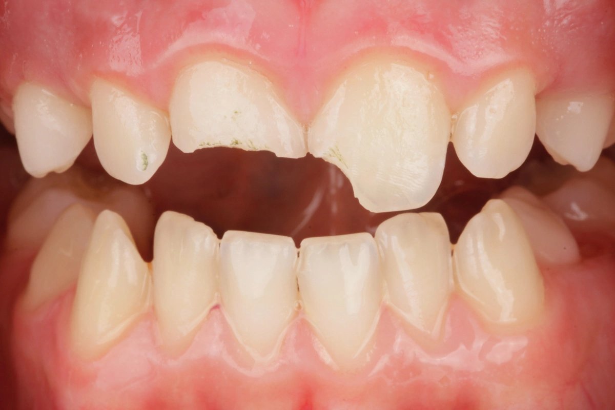 «Reposición de diente fracturado con el propio fragmento del paciente.»