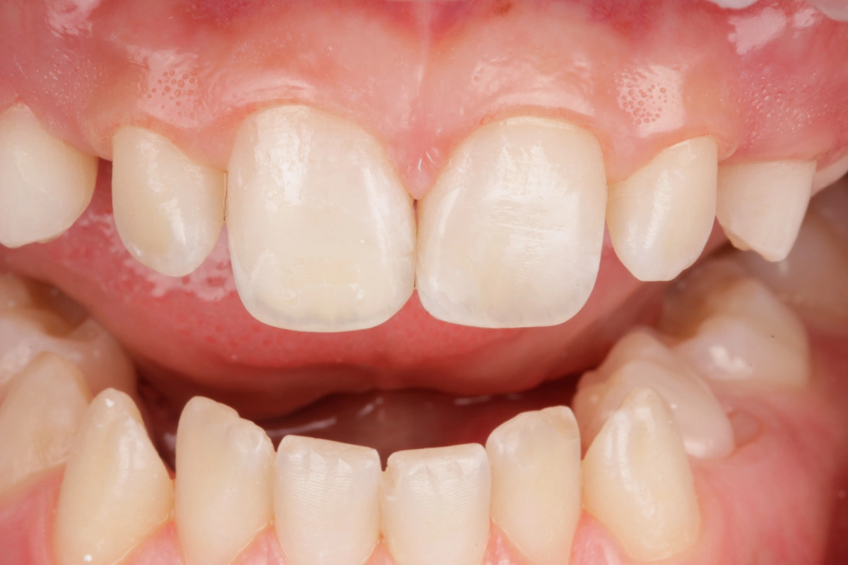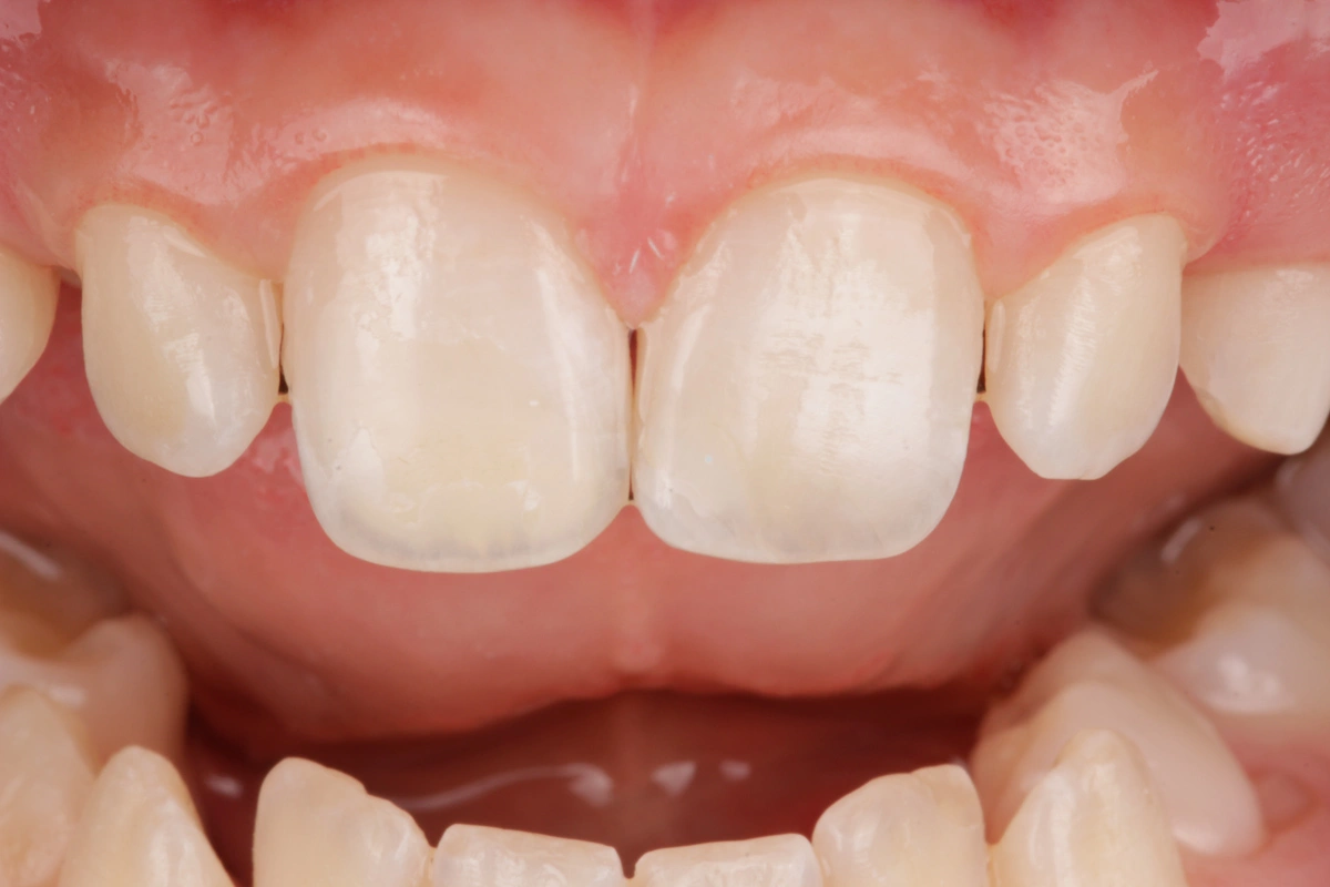 Paciente infantil acude a consulta tras traumatismo jugando en el colegio. Trae los fragmentos de los dientes fracturados, ideal para ser lo más conservadores posible. Una vez comprobado que los fragmentos encajan correctamente, los desinfectamos y los cementamos con técnica adhesiva.