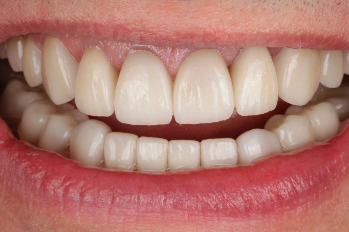 Tras realizar un estudio exhaustivo optamos por una rehabilitación completa con coronas, carillas e incrustaciones en disilicato de litio. Realizamos una prueba previa a la preparación de los dientes para establecer la longitud de los dientes definitivos.